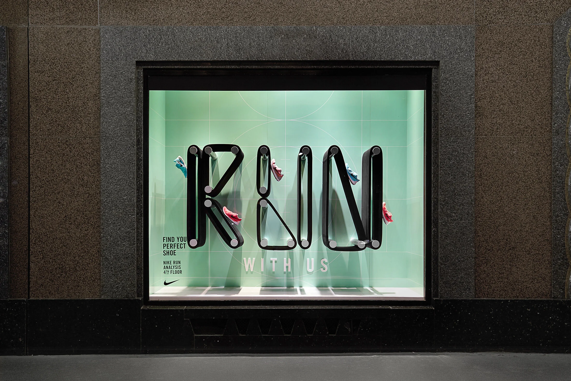 14 x Retail windows for Nike take-over at Galleries Lafayette during the women’s marathon in Paris.